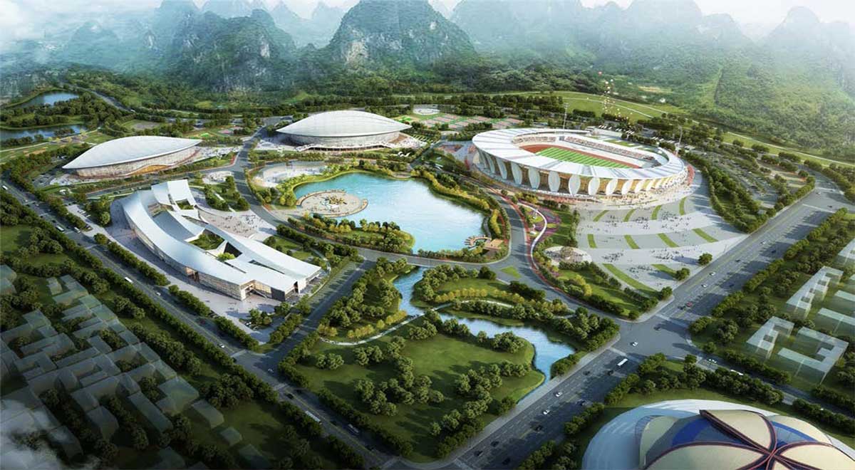 項目位于廣西壯族自治區(qū)靖西市,公園主要建設(shè)內(nèi)容有文化三館、健身館、游泳館、體育館等。博大此次中標(biāo)的是文化三館和健身館幕墻工程。