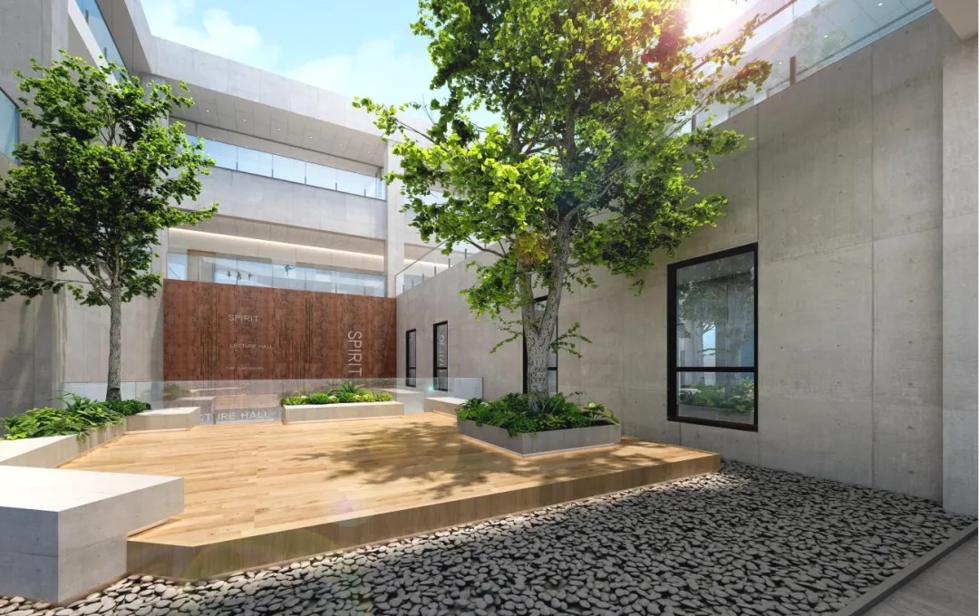 在滿是陽光的露臺上,學(xué)員可以開展一些戶外的活動(dòng),所以在布局上需要一塊相對開場的區(qū)域,周邊利用花壇結(jié)合著座椅,做一些功能性的布置。