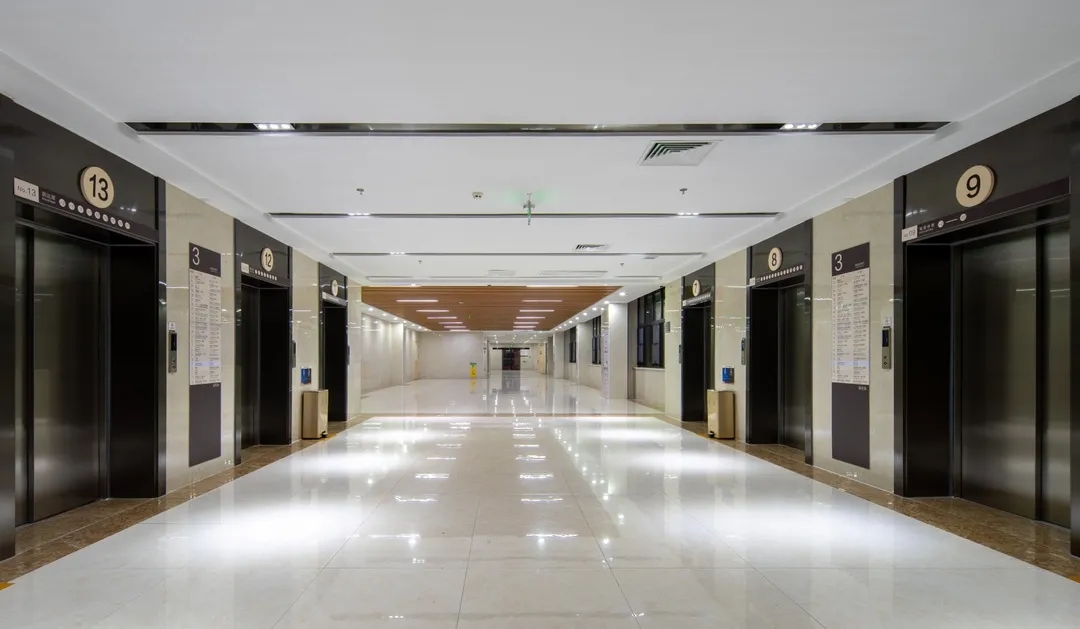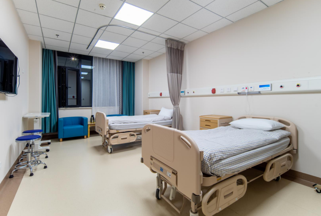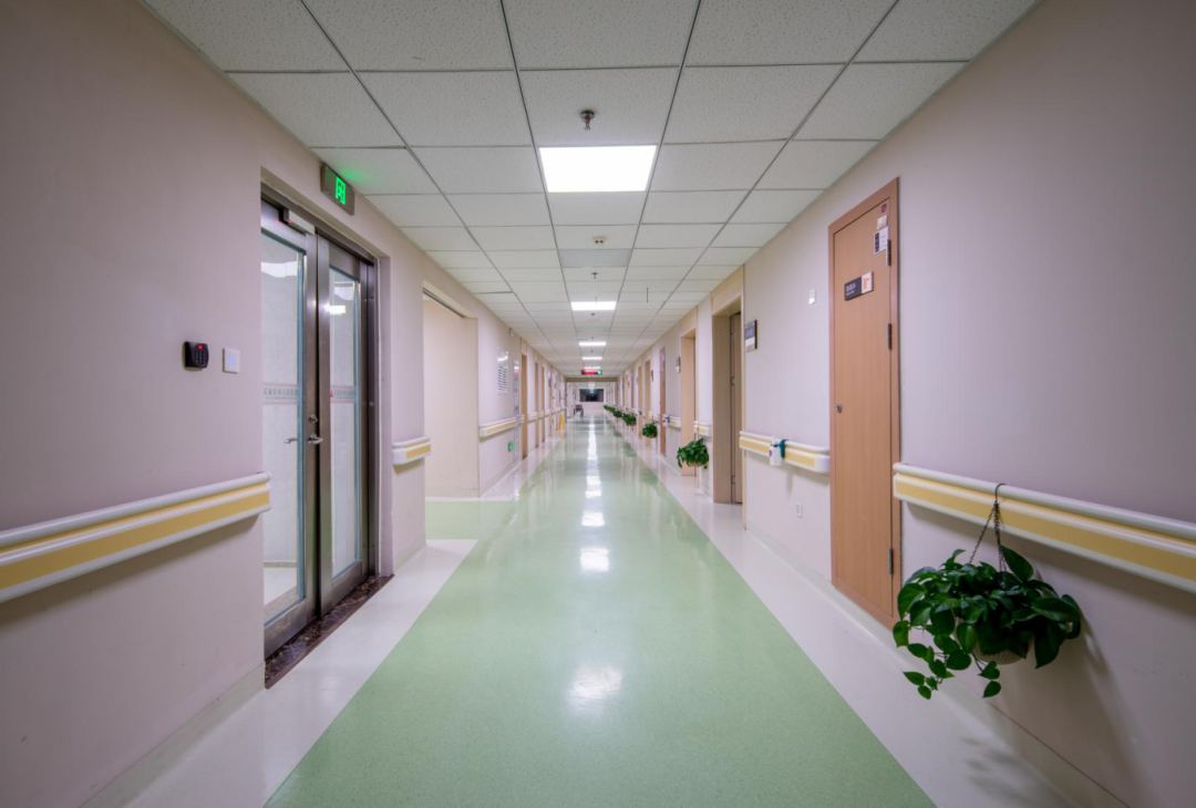 住院樓走廊采用礦棉吸音板吊頂,防火吸音性能好,同時,該產品具有不燃性能,提高了醫(yī)院的防火安全性。地面采用PVC地板膠,防滑耐磨、吸音減震,是建設現(xiàn)代化醫(yī)院的環(huán)保用材。