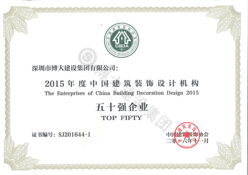 2015年度中國建筑裝飾設計機構50強企業(yè)