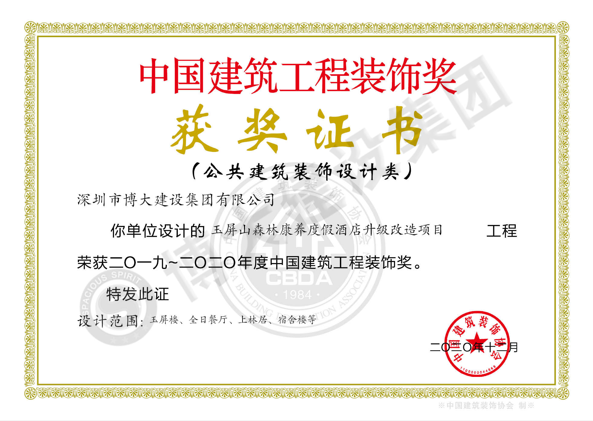 中國建筑工程裝飾獎(四川玉屏山康養(yǎng)度假酒店裝飾施工)