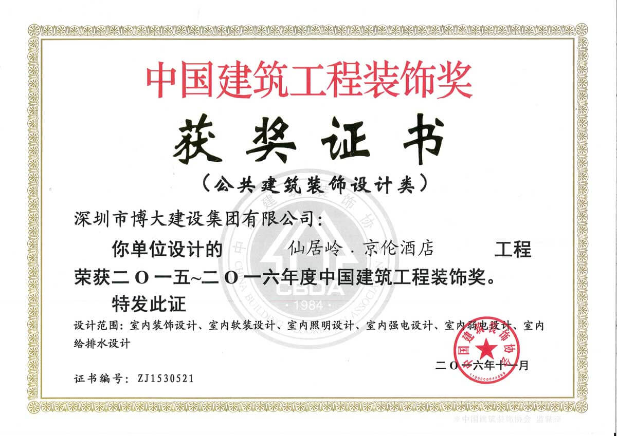 中國建筑工程裝飾獎(仙居嶺.京倫酒店-裝飾)