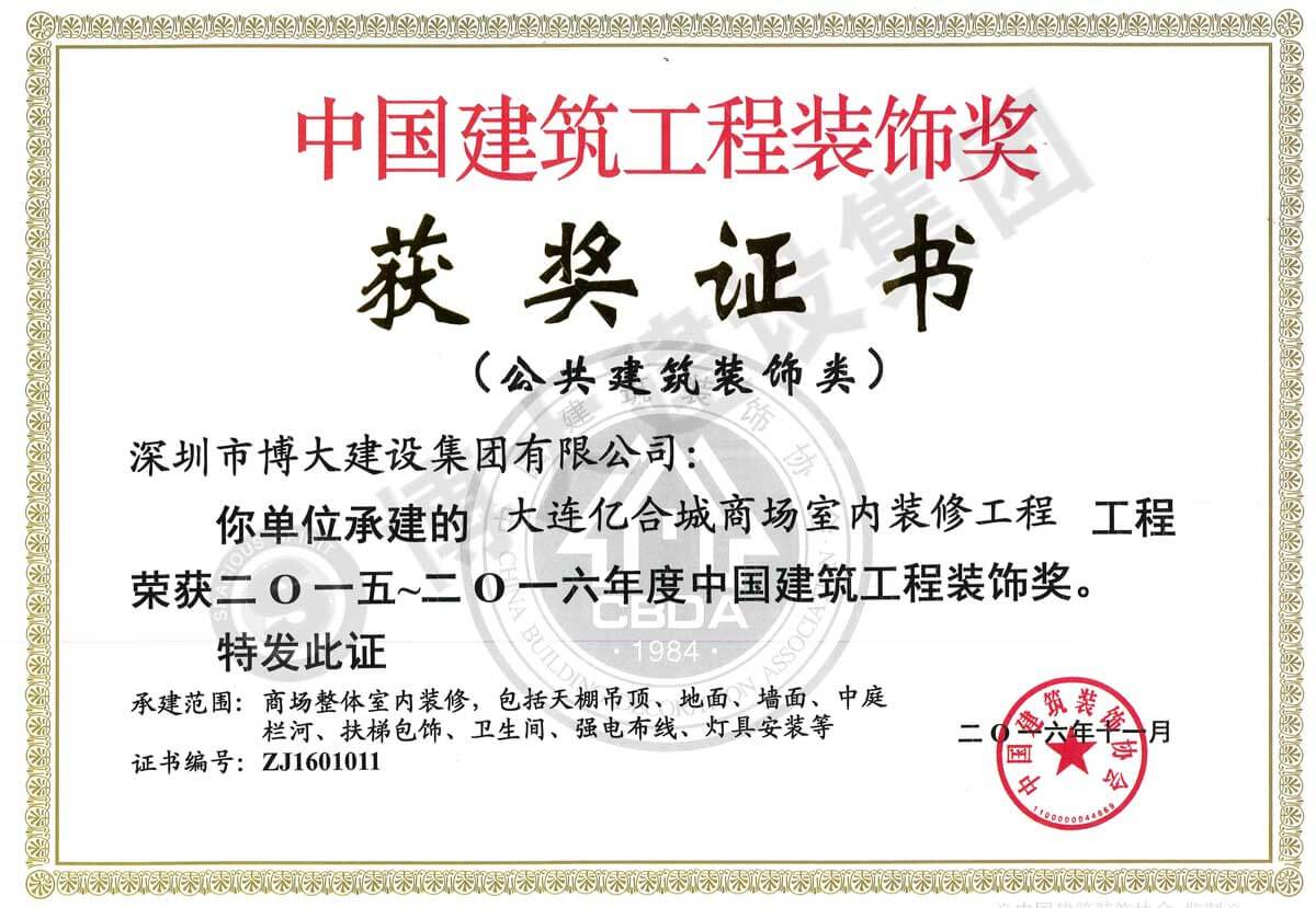 中國建筑工程裝飾獎(大連億合城商場室內(nèi)裝修工程-裝飾)