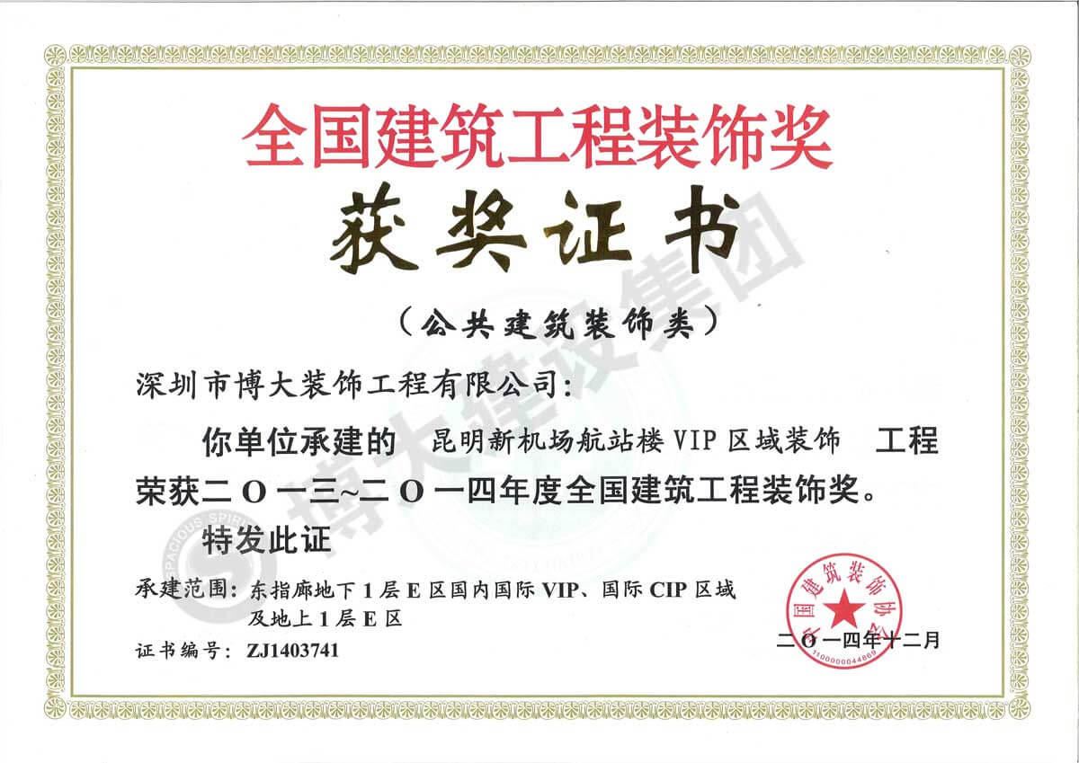 中國建筑工程裝飾獎(jiǎng)(昆明新機(jī)場航站樓VIP-裝飾)