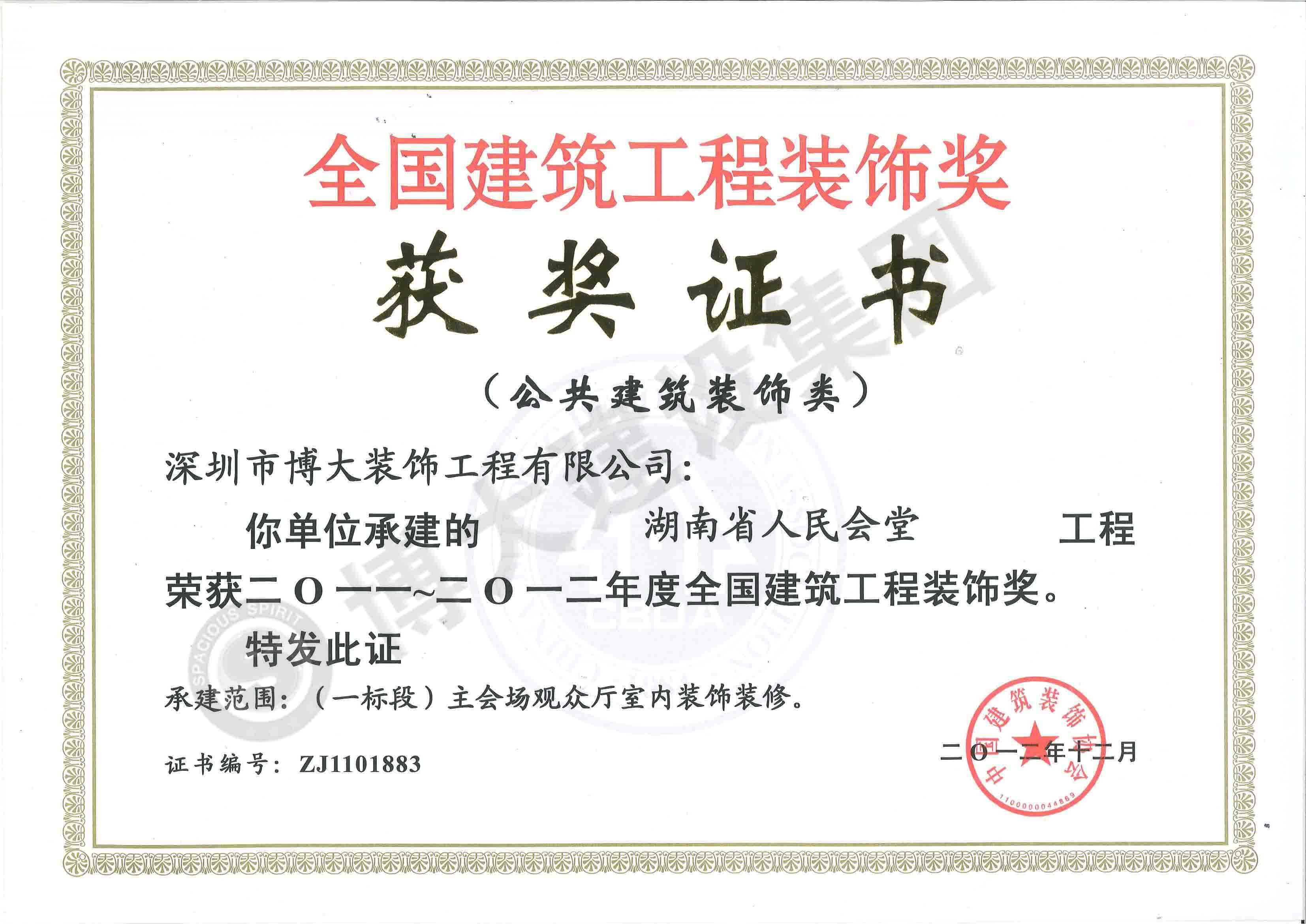中國建筑工程裝飾獎(jiǎng)(湖南人民會(huì)堂-裝飾)