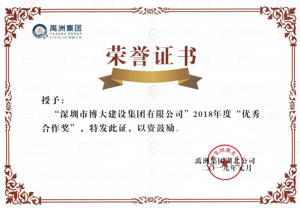 五、禹洲集團(tuán)2018年度優(yōu)秀合作獎(jiǎng)