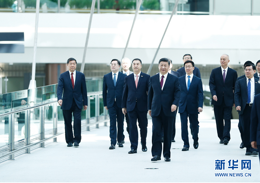 習(xí)近平總書記等巡覽航站樓(圖片源自新華網(wǎng))