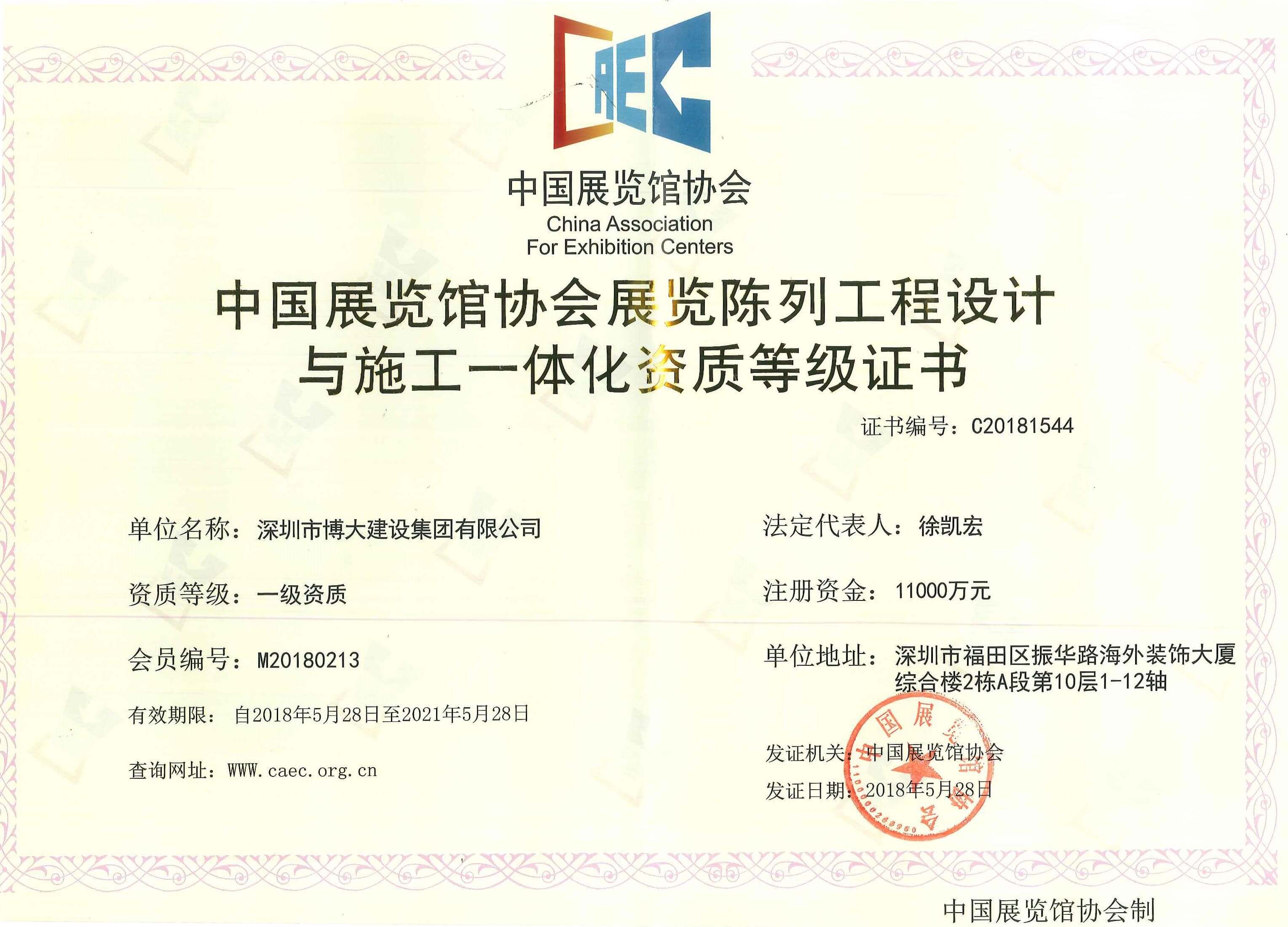 博大建設(shè)集團作為行業(yè)最具發(fā)展活力的企業(yè),近年來以迅猛的成長速度,得到了越來越多的關(guān)注和認(rèn)可。在各級領(lǐng)導(dǎo)的關(guān)懷和全體家人的共同努力下,集團資質(zhì)建設(shè)取得新的進展:獲得展覽工程企業(yè)一級資質(zhì),展覽陳列工程設(shè)計與施工一體化一級資質(zhì)。