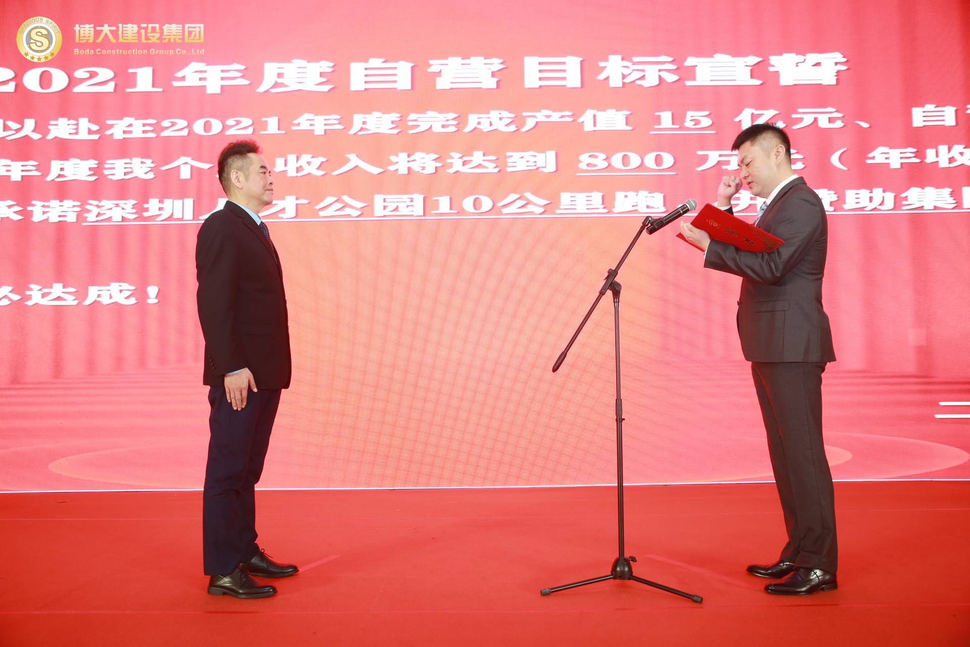 開局即決戰(zhàn),起步即沖刺。博大建設(shè)集團(tuán)于2月24日晚隆重召開2020年優(yōu)秀表彰大會(huì)暨2021年目標(biāo)宣誓大會(huì),博大將士吹響攻堅(jiān)決勝“沖鋒號(hào)”!創(chuàng)始人徐凱宏、董事長(zhǎng)洪宇、副董事長(zhǎng)黃河、總裁李朕鴻、常務(wù)副總裁沈雁飛等董事會(huì)領(lǐng)導(dǎo)盛裝出席,與來(lái)自全國(guó)各地的400余名員工共同見證充滿正能量的年度盛典!