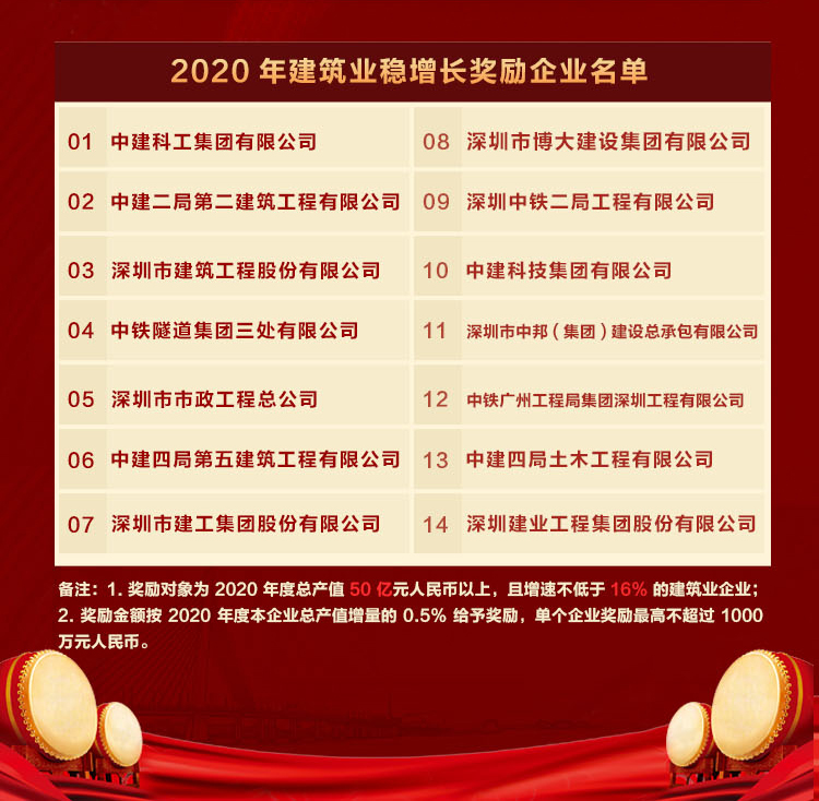 行業(yè)唯一 | 博大榮獲深圳市政府2020年建筑業(yè)穩(wěn)增長獎勵
